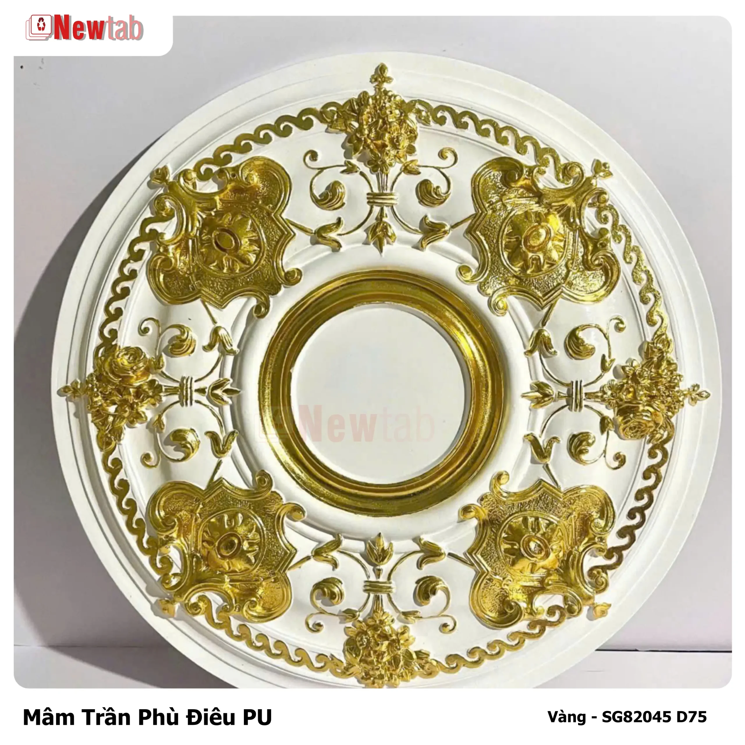Mâm trần hoa văn phù điêu nhựa PU là sản phẩm trang trí trần nhà cao cấp, nổi bật với thiết kế hoa văn chạm nổi sắc sảo, mang phong cách cổ điển hoặc tân cổ điển. Đây là lựa chọn lý tưởng để tạo điểm nhấn trung tâm trần nhà, thường kết hợp với đèn chùm, quạt trần hoặc làm mâm trần độc lập, giúp không gian thêm phần sang trọng, đẳng cấp.