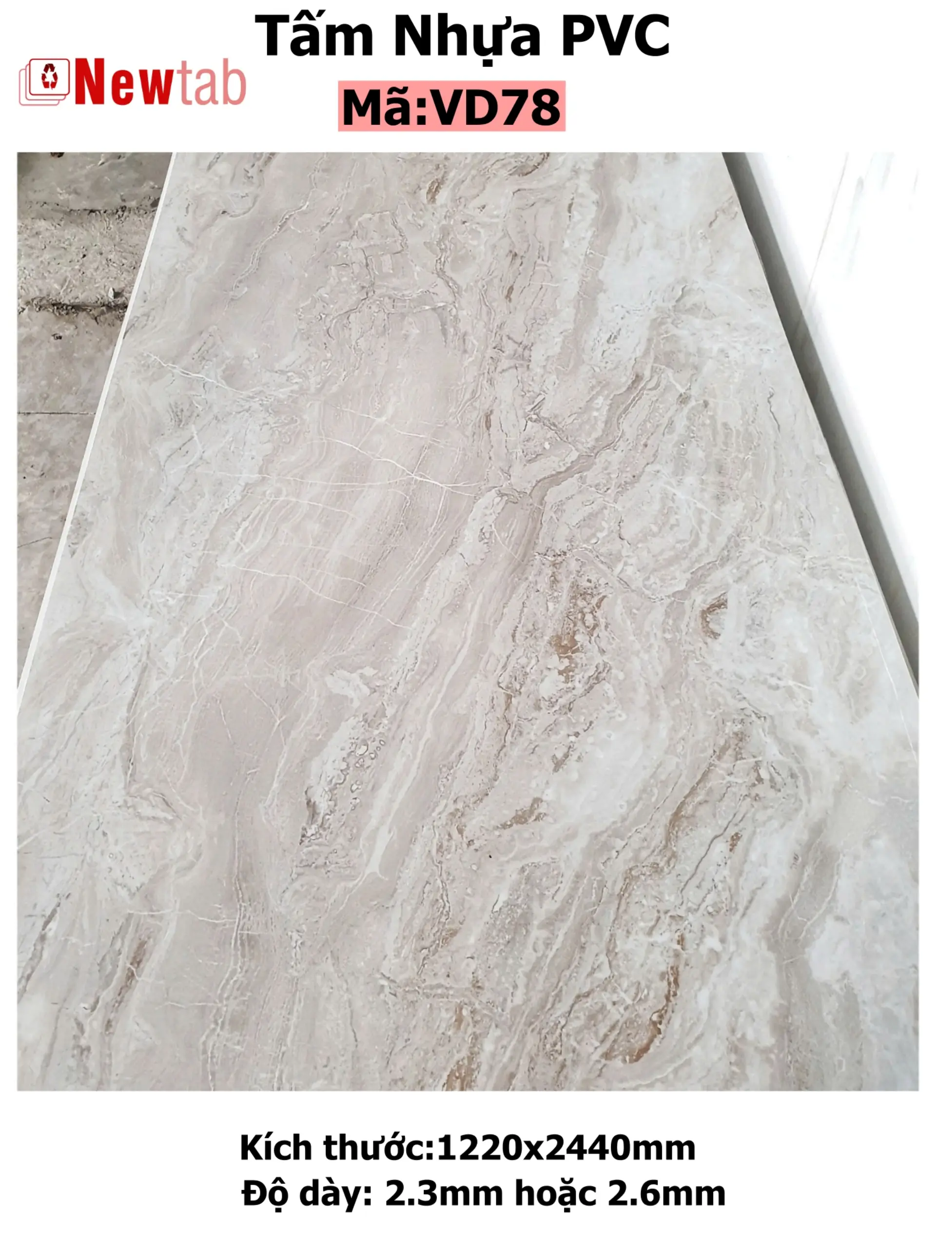 Hãy là người đầu tiên nhận xét “Tấm Nhựa PVC Vân Đá mã – VD78”